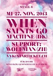 When Saints Go Machine – ein unkonventioneller Name für eine Band, aber kein Wunder, sie kommen ja aus Dänemark. Und im Norden wird mangelndes Sonnenlicht oftmals mit Kreativität kompensiert! (Man denke nur einmal an die Anzahl an tollen Bands, die aus dem Norden und aus Skandinavien stammen). Die vier Dänen (Schlagzeug, Synthie & Gesang I, Keyboard, Gesang II) mischen heute Abend den Zürcher Stall 6 auf.