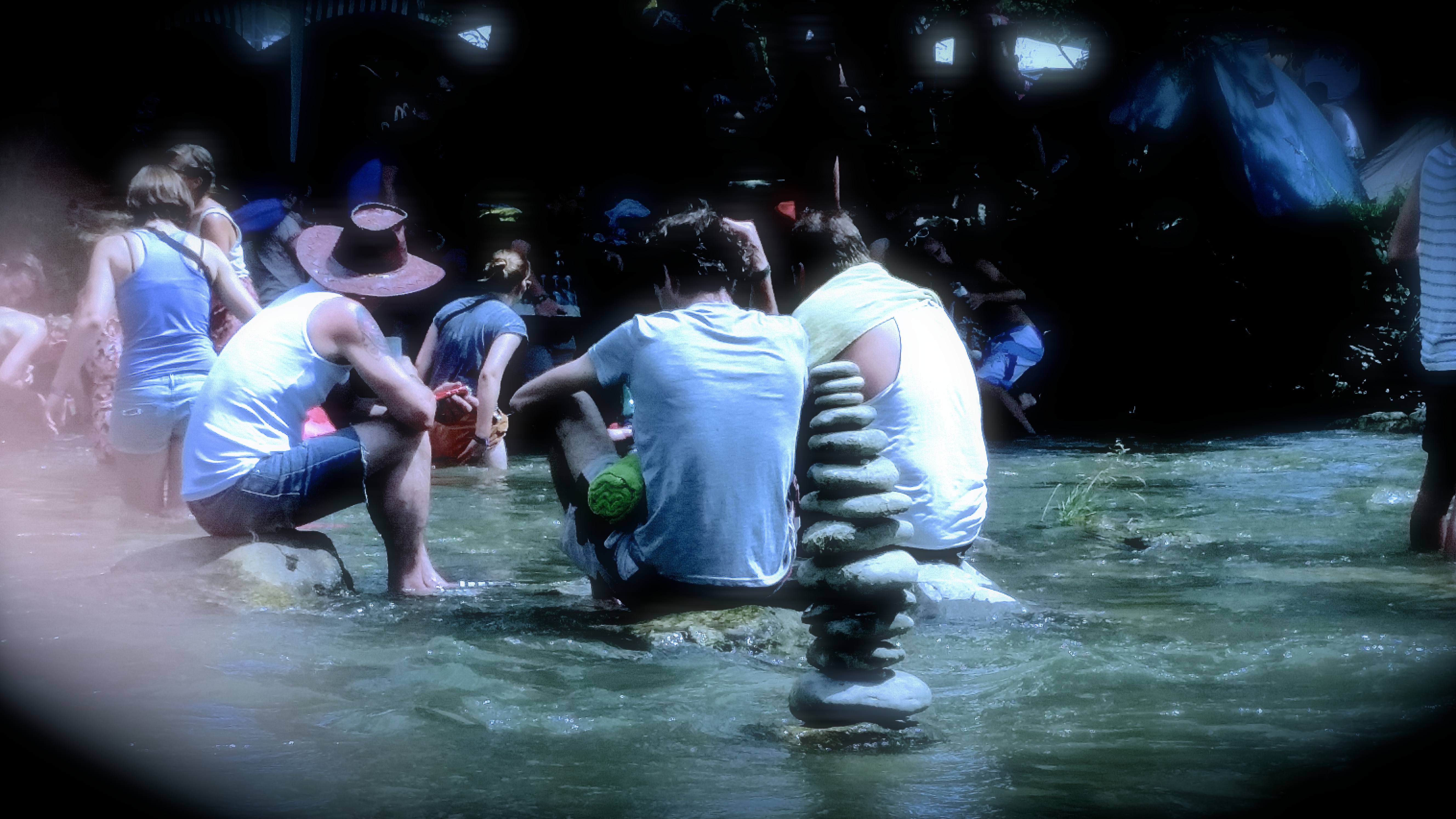 Am Samstag war es so warm, dass man sich im nah gelegenen Fluss, der Sitter, abkühlen konnte. Sogar Steintürmchen wurden gebaut.