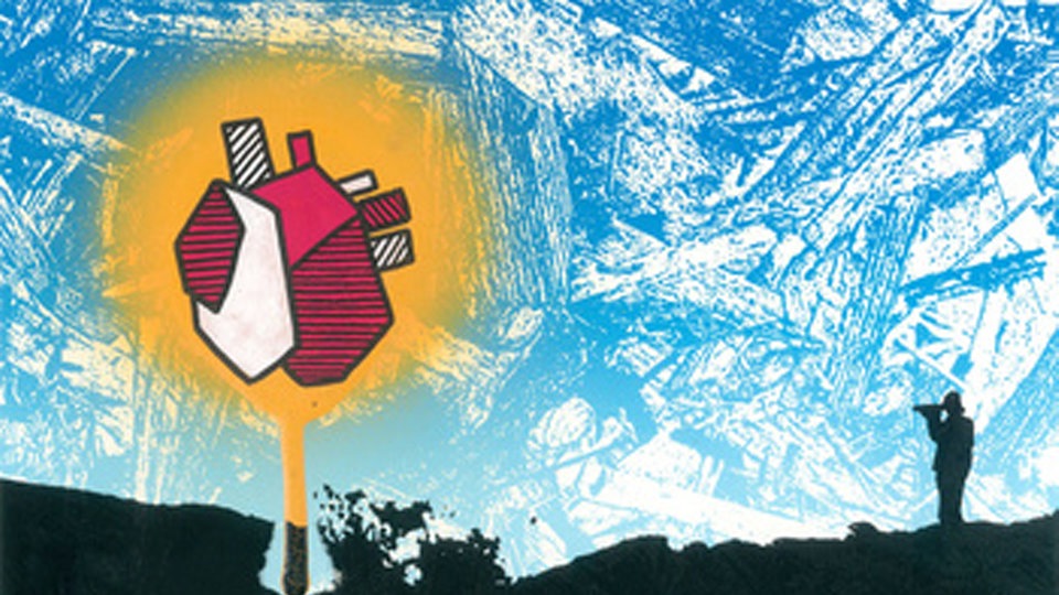 Eines der 12 nominierten Alben: Polar Bear – In Each And Everyone (2014) zeigt ein kritzeliger Himmel, in welchem ein überzeichnetes leuchtendes Herz schwebt.