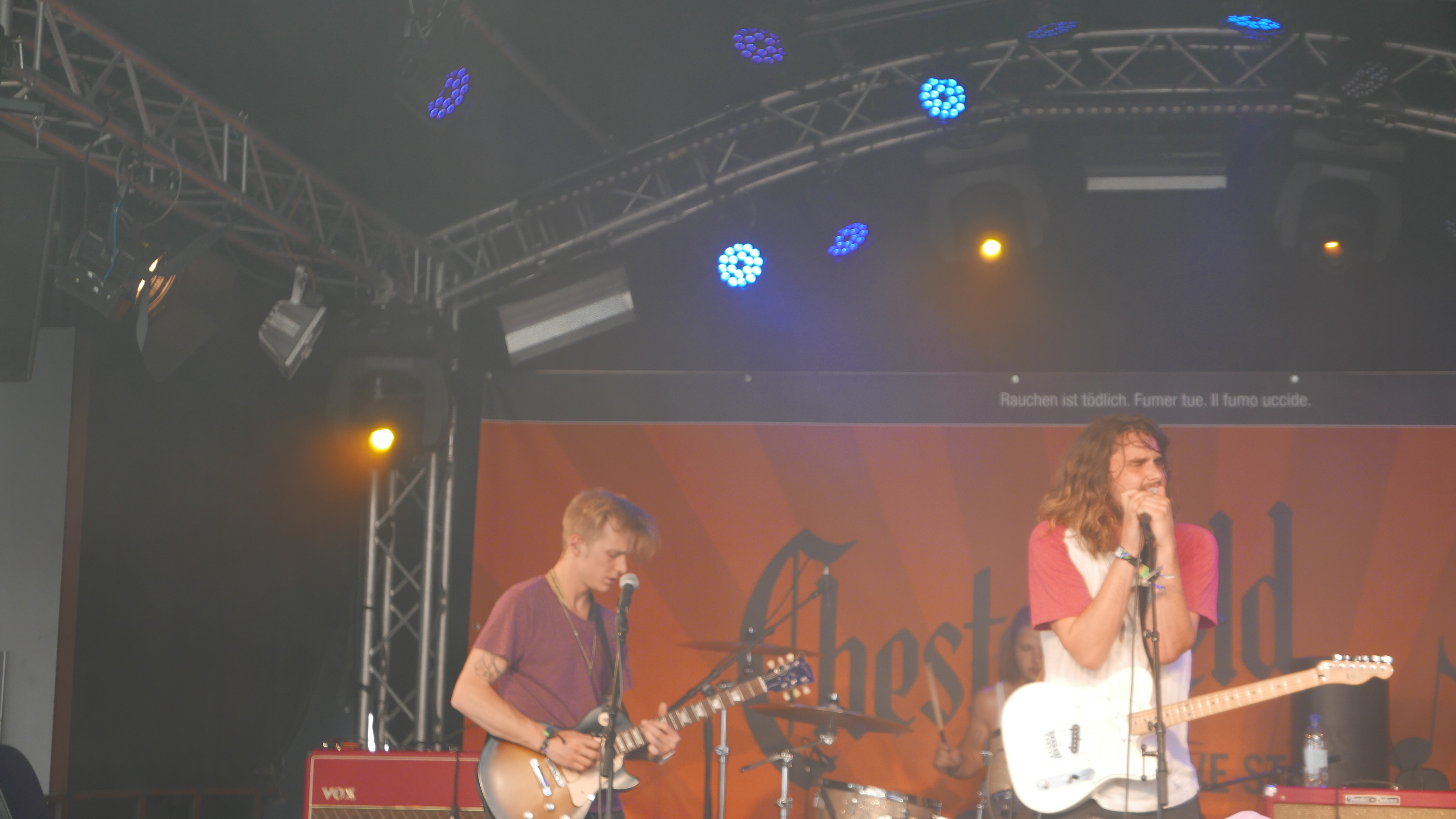 Ein Tag vor Annenmaykantereit spielte auf derselben Bühne die deutsche Band Trümmer. Mit ihrem kleinen Hit „Wo Ist Die Euphorie?“ überzeugten die Hamburger vollends. Und auch ihr Set war energiegeladen und höchst textgewaltig. Hier ist eine Aufnahme des Songs „In All Diesen Nächten“ vom OASG.