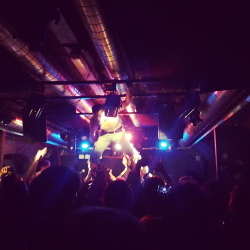 Auch der Rest der Band transportiert an diesem Abend eine wahnsinnige Energie. Hüpfen, Klettern, Headbangen, Crowdsurfen… Shame bedienen sich des gesamten Repertoires an punkigen Live-Performance-Elementen. Und das Publikum lässt sich davon anstecken: Etwa ein Viertel des Saals wird von einem Moshpit eingenommen, der nur durch gelegentliche Ansagen der Band unterbrochen wird. Nicht, dass ich es aus eigener Erfahrung beurteilen könnte, aber: Wahrscheinlich sorgten nicht einmal die Punk-Veteranen von The Exploited, die nicht einmal zwei Wochen zuvor im Dynamo spielten, für eine derart mitreissend dynamische Stimmung im Publikum.